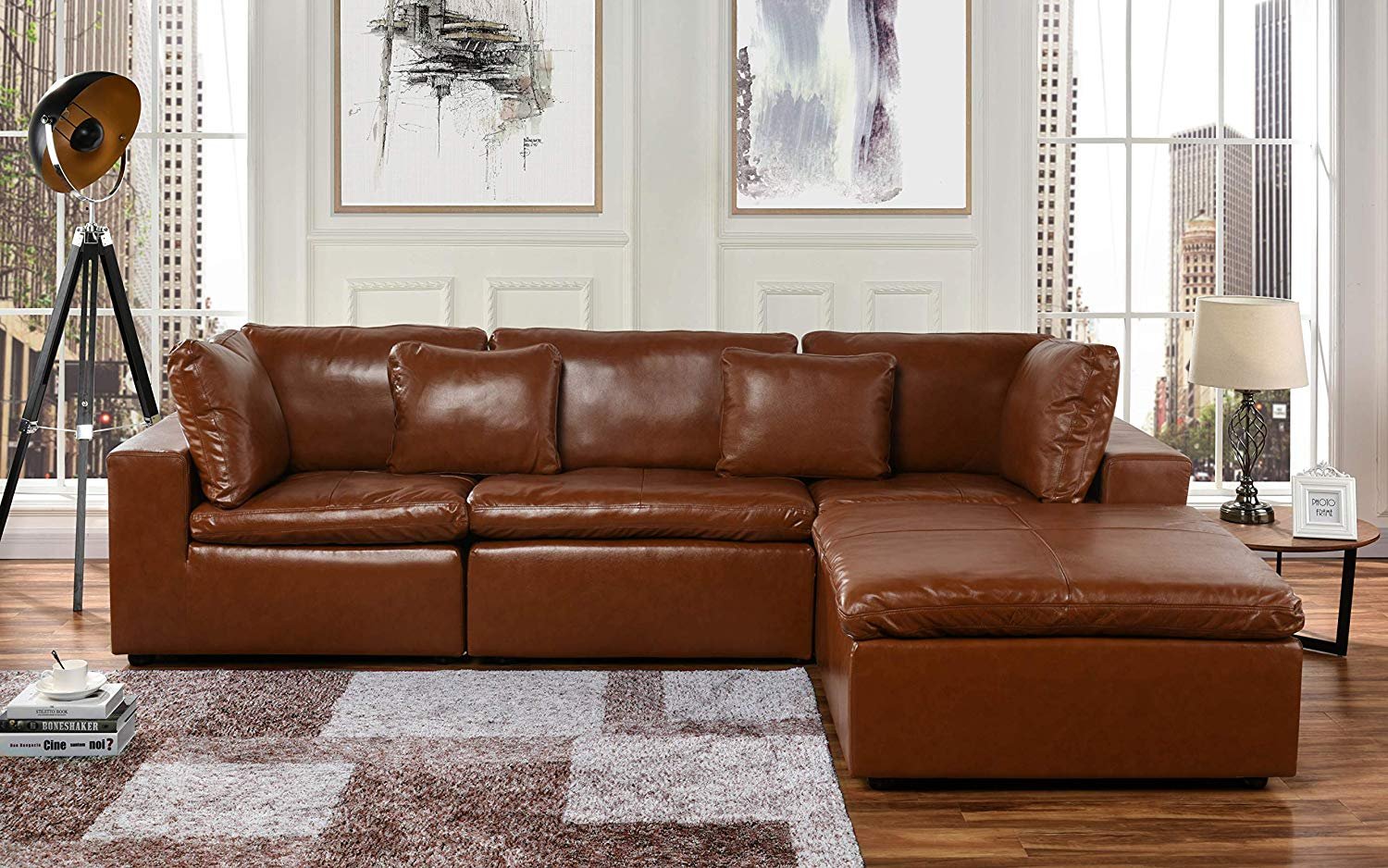 Camel Large Leather Sectional Sofa, L-Shape Couch with ... from cdn.listingmirror.com Browse sectional sofas and couches from pottery barn. Custom l shaped sectional slipcovers. Leather sectional leather sectional sofa modern leather sectional white top grain leather sectional italian leather sofa sofa couch set l shape corner sectional with chaise velour crushed velvet chesterfield tufted modern petrol emerald green. End your pursuit of the perfect sofa with this versatile sectional. Jake leather sofa chaise sectional with wood base. It includes a storage ottoman that could double as a coffee table, as well as a sleeper sectional that includes ample storage under the chaise seater. Memphis sectional, chaise on right when facing, bonded leather, fold out back cushions furniture of america flori pneumatic gas lift headrest bonded leather match sectional with. Related searches wayfair batson 83 wide leather match right hand facing sofa & chaise with ottoman a&j homes studio upholstery color: