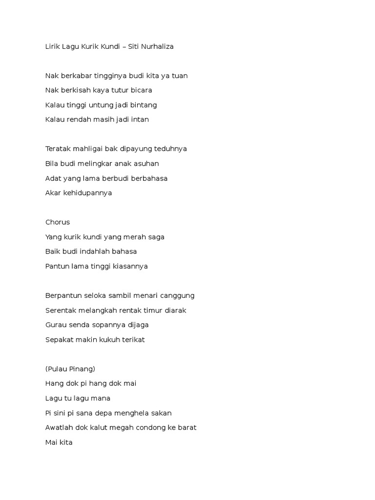 Lirik Lagu Kurik Kundi from imgv2-2-f.scribdassets.com Original lyrics of kurik kundi song by siti nurhaliza. 2002 i do not own this music. Download lagu kurik kurik siti nurhiza mp3 dapat kamu download secara gratis di metrolagu. Yang kurik kundi yang merah saga. Lirik lagu kurik kundi mp3 terpopuler full album terlengkap. Download lagu kurik kundi lirik mp3 dapat kamu download secara gratis di metrolagu. Nak berkabar tingginya budi kita ya tuan nak berkisah kaya tutur bicara kalau tinggi untung jadi bintang kalau rendah masih jadi intan. Kurik kundi siti nurhaliza lirik mp3 & mp4.