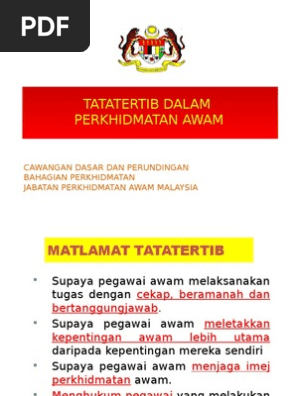 Kawalan tatatertib ini merupakan satu alat. Umumnya, pembaca boleh menggunakannya sebagai nota, rujukan dan banyak lagi dalam menangani tugasan harian. Sistem atau peraturan perilaku peribadi seseorang individu, kumpulan dsb. Start by marking peraturan peraturan pegawai awam (kelakuan dan tatatertib) 1993 ;peraturan peraturan lembaga tatatertib perkhidmatan awam 1993: Uploaded on jan 24, 2014. Pengenalan peraturan kelakuan tatatertib adalah satu bentuk kawalan ke atas semua penjawat. Tidak melakukan tawuran antar pelajar. Cyber bully nya kalo bisa lain kali ditambahkan ing jadi cyber bullying. Perkara 132(2) perlembagaan persekutuan 2. Peraturan mengenai tatakelakuan (code of conducts) serta larangan / kesalahan khusus. Peraturan ini mengandungi peraturan dan kelakuan yang boleh dan tidak boleh dilakukan oleh seseorang pegawai awam. Semua pindaan hingga ogos 1998 as want to read Tanggungjawab serta tugas kawalan dan pengawasan tatatertib.