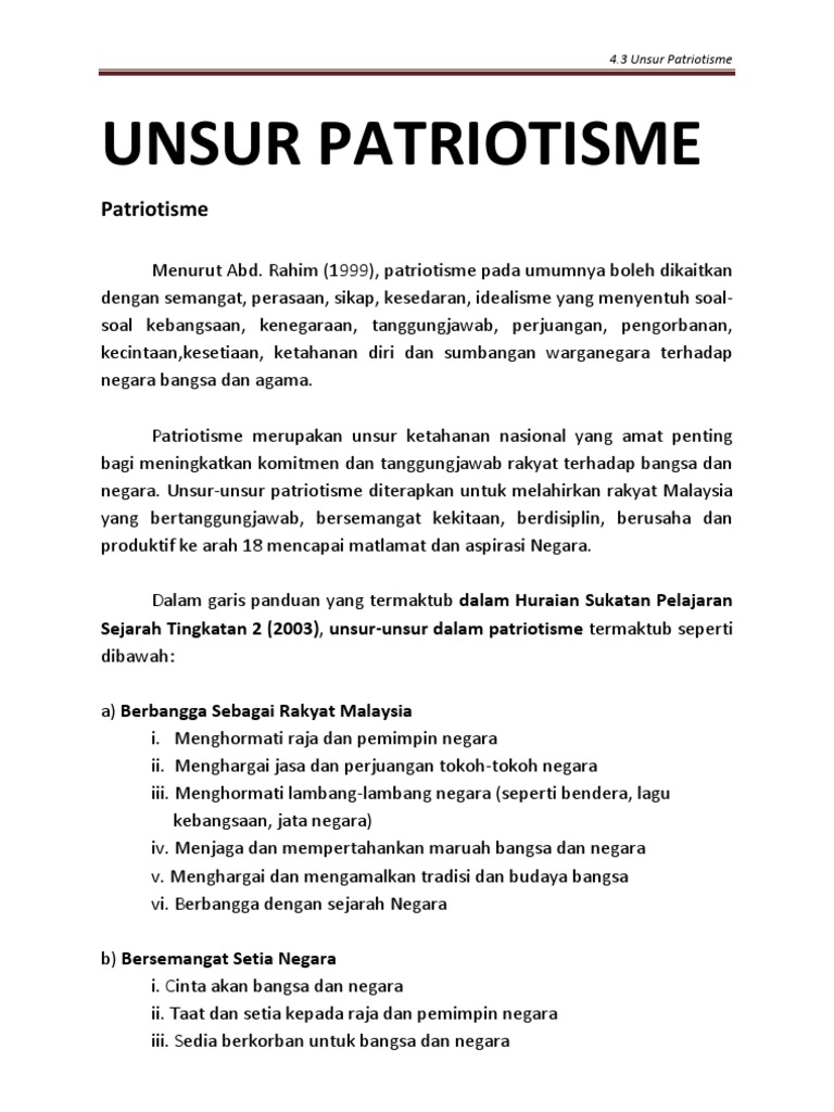 Jika salah satu diantaranya tidak sempurna atau tidak ada, maka akan subscribe blog kami dan dapatkan perspektif baru tentang pengelolaan bisnis dan keuangan. Penutup berisikan kesimpulan serta harapan terhadap apa yang ditulis dalam proposal kepada pembaca. Budaya sendiri adalah penggolongan sosial yang didasarkan pada pengetahuan kolektif dari suatu masyarakat (common wisdom). Demikian, nilai, unsur patriotisme dan kesedaran sivik perlu diterapkan dalam diri murid untuk melatih mereka agar mempraktikkan semangat cinta akan negara dan semangat patriotik yang semestinya akan mengukuhkan lagi perpaduan antara kaum sekaligus menjadikan nama negara kita. Unsur patriotisme dan iktibar daripada sejarah dapat dilihat dalam pelbagai bentuk seperti tajuk, sudut maklumat dan rumusan di dalam buku teks (norrizan 2003). Selanjutnya ada unsur rumusan masalah. Oleh itu, kurikulum pendidikan sejarah sebenarnya telah berfungsi sebagai citizenship transmission yang bertujuan membentuk generasi. …… dapat menaikkan semangat patriotisme. Akuntansi sangat erat kaitannya dengan laporan keuangan. Perlu kiranya diingat bahwa proses penelitian adalah suatu proses yang bersambungan dan dimulai dengan adanya minat peneliti yang mendalam tentang hubungan. Cara buat dan contoh folio terbaik sejarah pt3 2017 di negeri tempat tinggal calon. Puisi juga diartikan sebagai sajak atau gubahan dalam bahasa yang bentuknya dipilih dan ditata secara cermat sehingga. Untuk lebih jelasnya mengenai materi ini, mari simak penjelasan berikut.