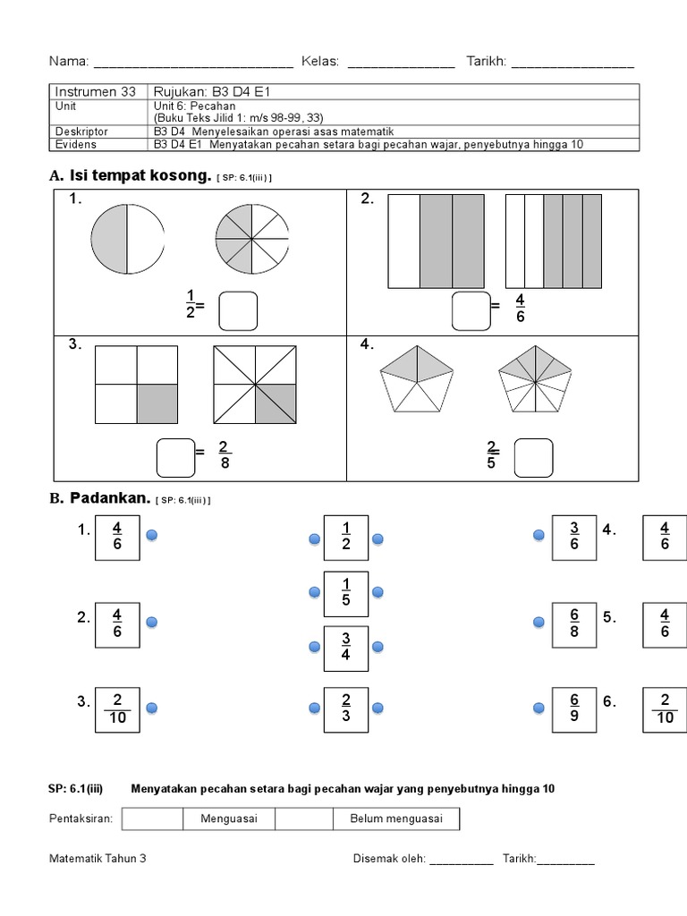 Soalan Pecahan Tahun 3 - Tolak pecahan tahun 4 cari padanan.. Penerangan tajuk pecahan & pecahan setara untuk tahun 3 berdasarkan sukatan buku teks tahun 3. Collection of worksheet preschool bahasa melayu download via www.pinterest.com. Bahasa melayu kssr tahun 3. Bina ayat tahun 1, soalan bina ayat tahun 4, soalan bina 5 ayat, modul penulisan sk via www.slideshare.net. Bincang soalan latihan tambah pecahan dalam buku teks matematik tahun 4 (uji diri muka surat 74) dalam video ini cikgu.