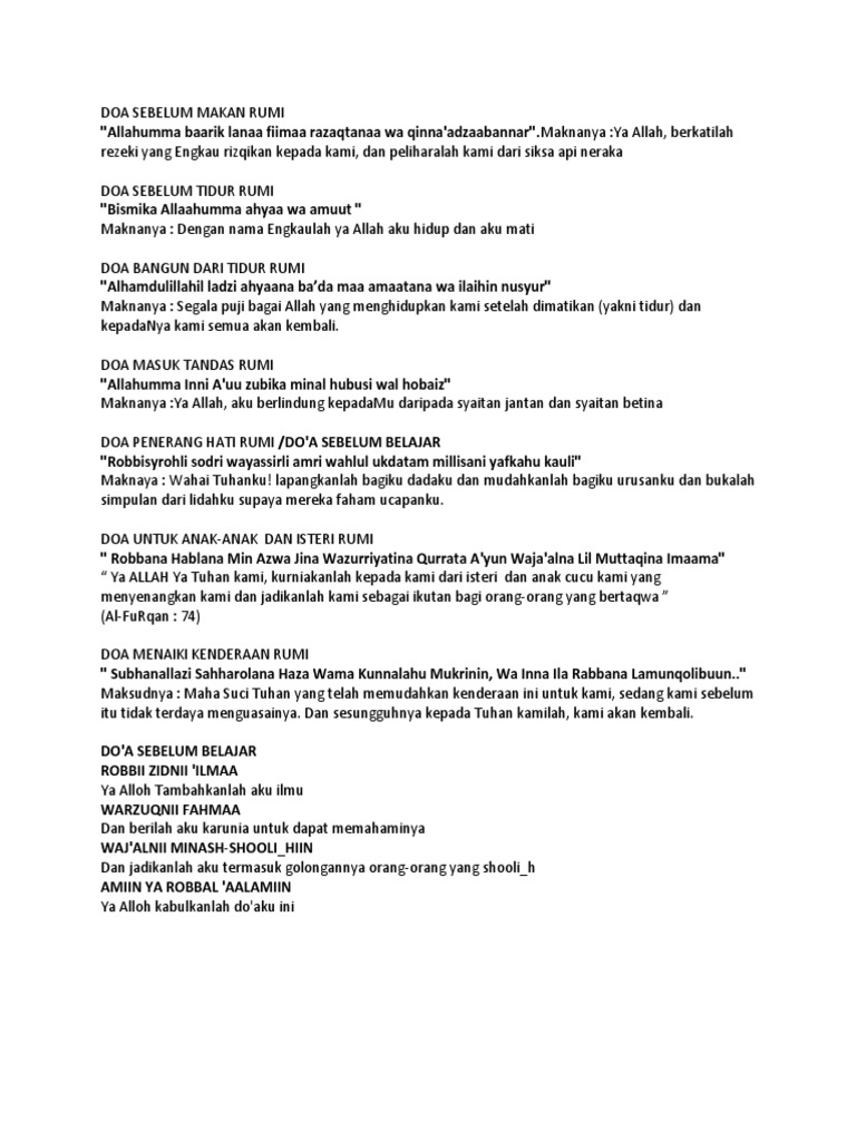 Doa bangun tidur berbunyi 'alhamdullillahilladzi ahyaanaa bada maa amaatanaa wa ilaihin nushur.' bangun tidur merupakan aktivitas yang dilakukan pada setiap orang, karena memang pada dasarnya. Doa qunut rumi adalah doa yang di baca ketika sholat subuh, tepatnya di waktu i'tidal atau di waktu berdiri dari sesudah ruku pada raka'at ter akhir, hukum dari membaca doa qunut pendek ini adalah. Bacaan doa sebelum tidur malam. Bantuan ejaan dalam rumi dan bacaan audio juga turut disertakan. English this app will help muslim to perform daily prayers, before going to sleep and after get up from sleep.
