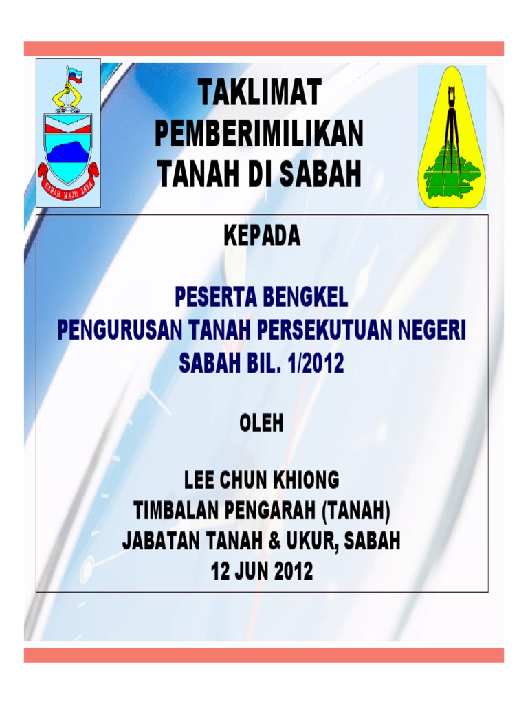 Dinyatakan dalam ruang (6) dan disimpan dengan pengarah tanah dan ukur negeri. Antara geran yang dirampas termasuk geran tanah perumahan, pertanian dan juga komersial di beberapa lokasi di sabah. For in sabah land administration system = land. Kerajaan negeri sabah adalah pihak berkuasa yang mengawal sabah, salah satu daripada 13 negeri malaysia, yang berpangkalan di kota kinabalu, ibu negeri. Saya berhak beri geran tanah kepada rakyat.